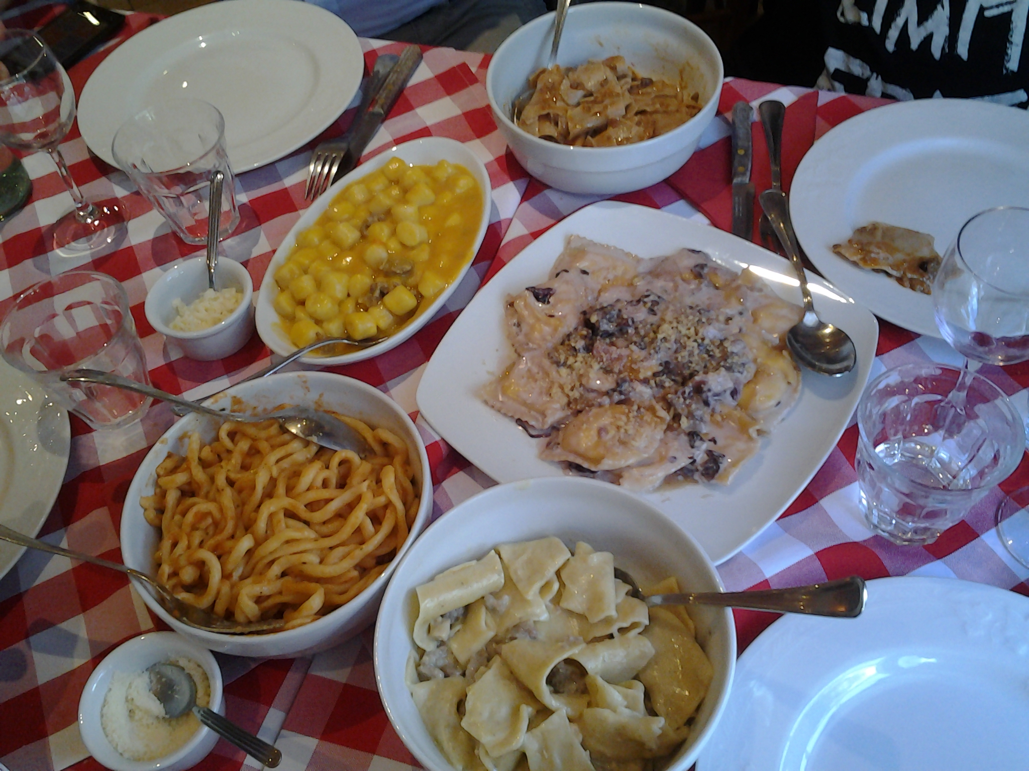 Essendo in ottima compagnia, noi optiamo per assaggiare TUTTI gli antipasti ed i primi.